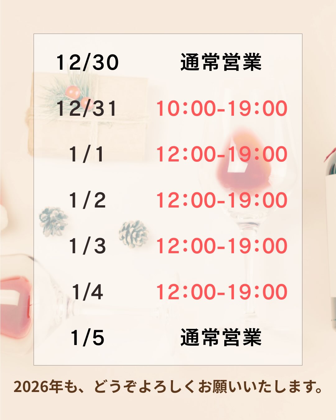 また、年始限定のワインイベントも予定しております📢